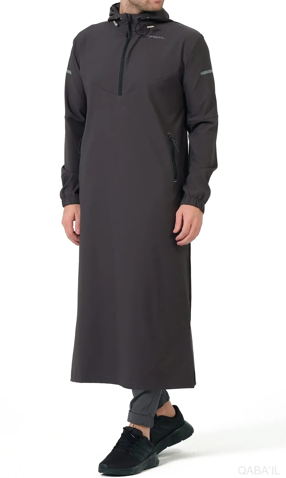 Avec sa capuche intégrée, le Qamisweat Drift Anthracite Qaba’il se distingue immédiatement par son style moderne et dynamique. Cette touche sportive apporte un look tendance tout en conservant l’élégance et la pudeur caractéristiques du qamis. La coupe a été pensée pour offrir une liberté de mouvement optimale, tout en gardant une silhouette propre et structurée.